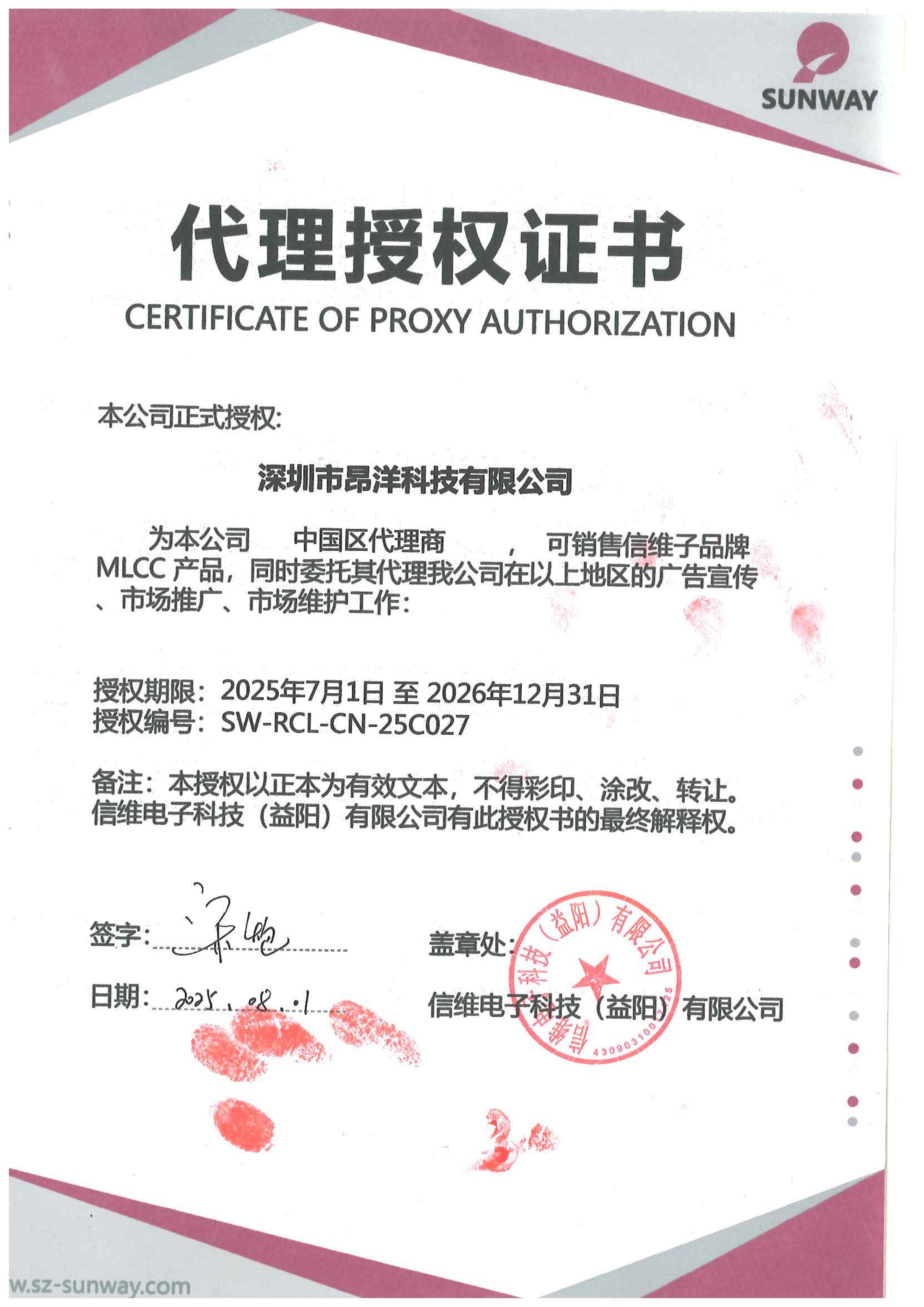 在電子元器件行業高速發展的當下,被動元件作為電子設備的“基石”,其技術突破與國產替代進程備受關注。信維通信(Sunway)憑借在MLCC(多層陶瓷電容器)、陶瓷電阻、合金電阻等領域的創新突破,成為國產替代的領軍企業。而深圳市昂洋科技有限公司作為信維通信的授權代理商,通過一站式采購服務、技術支撐與供應鏈優勢,為消費電子、汽車電子、通信、工業控制等領域客戶提供高效解決方案。