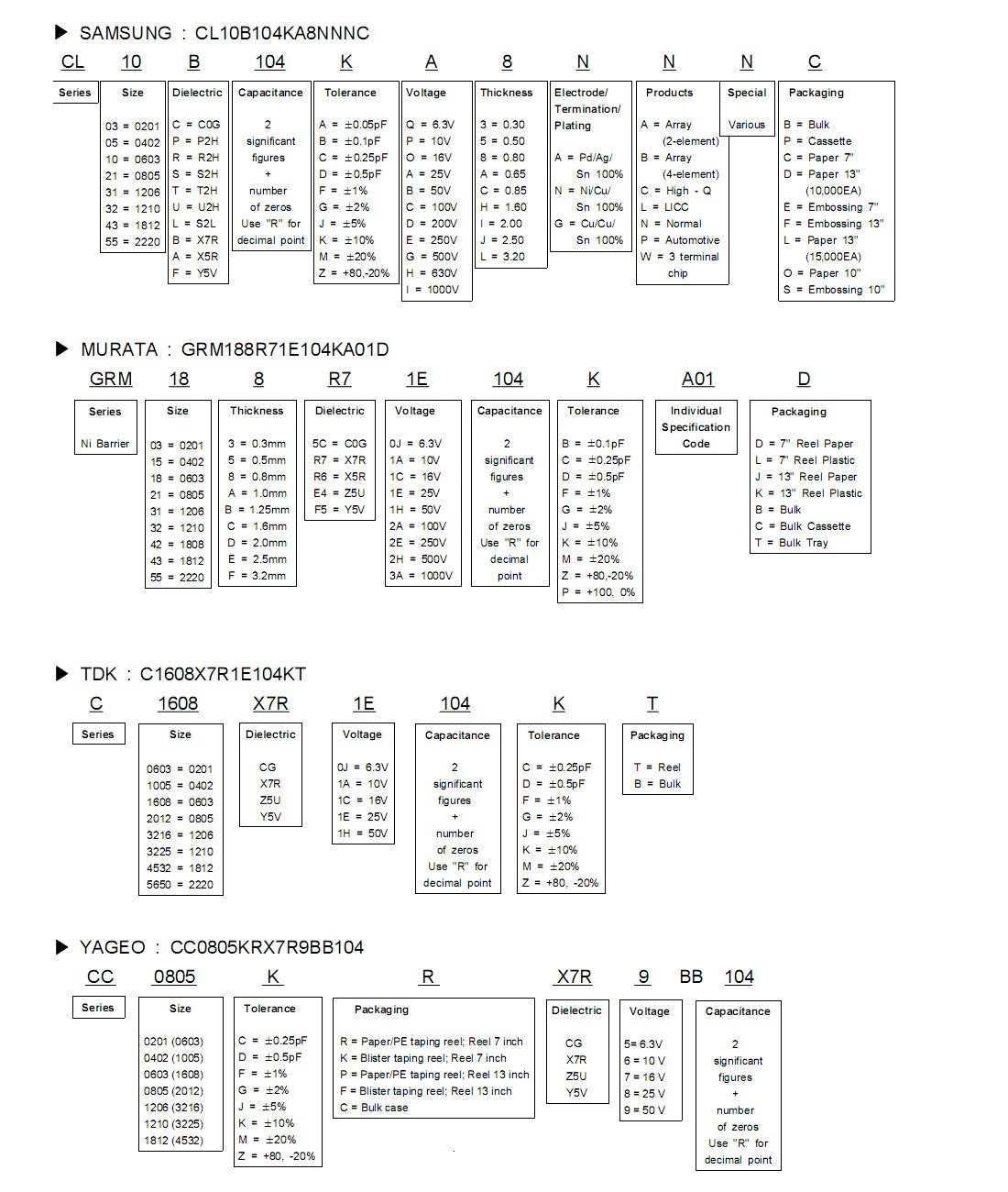 貼片電容型號規格命名規則:
